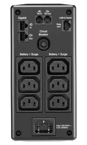 Záložní zdroj o výkonu 540 W s ochranou proti přepětí a line-interaktivní topologií. Disponuje šesti IEC 320 C13 konektory. Pro snadné ovládání je vybaven LCD displejem. Akustická varování pak upozorňují na změny stavu jednotky UPS či parametrů napájení. Samozřejmostí je ochrana datové linky nebo autotest baterie, který včas upozorní, kdy je třeba její výměny. Automatická regulace (AVR) pak eliminuje výkyvy napětí způsobující zhoršení audio a video signálu a namáhání napájecích komponent. Ke správě jednotky slouží USB port.
