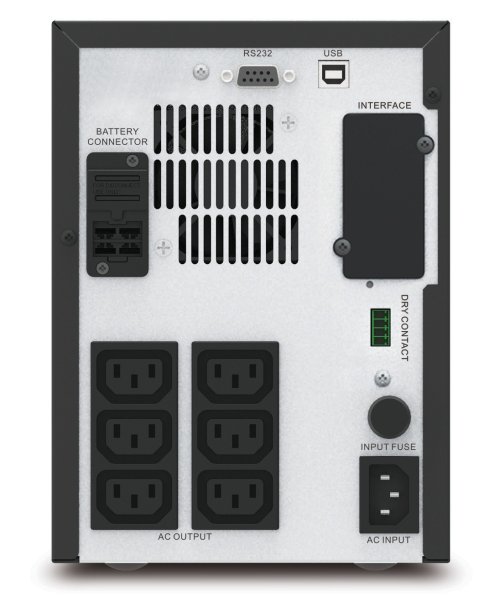 VÝSTUP Kapacita výstupního výkonu [W]: 700 Kapacita výstupního výkonu [VA]: 1000 Jmenovité výstupní napětí [V]: 230 Topologie: Line interaktivní Typ křivky: Sinusoida Výstupní přípojky: (6) IEC 320 C13 (Záložní provoz na baterie)
