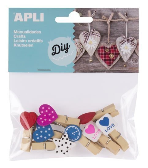 Dřevěné kolíčky s tvarovými doplňky v různobarevném provedení. Materiál: dřevo. Rozměry: 15-20 mm doplněk, kolíček 35 mm. Vhodné pro tvorbu dekorací, kreativní a pedagogické aktivity. Vhodné pro děti od 3 let. Balení: 8 ks.