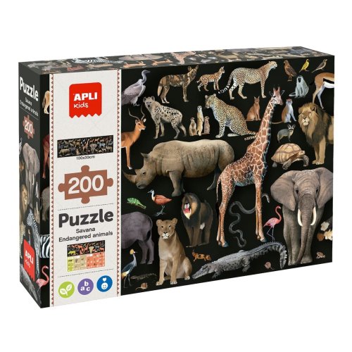 Přeneste se s dětmi do srdce africké savany a objevujte fascinující svět zvířat, kterým hrozí vyhynutí. Toto edukativní puzzle nejen baví, ale i učí – rozvíjí dětskou zvídavost a cit pro ochranu životního prostředí. Součástí balení je také 2 edukativní kartičky v 16 jazycích, se zajímavými informacemi a poznatky o ohrožených druzích. <br> • rozměry dílku: 6 × 3 cm; velikost puzzle 100 × 30 cm <br> • rozvoj koncentrace, jemné motoriky a prostorového vnímání dětí <br> • přirozená, hravá edukace <br> • motiv africké savany <br> • 16 jazyků vč. češtiny <br> • edukativní kartičky s popisem <br> • vhodné pro děti od 6 let