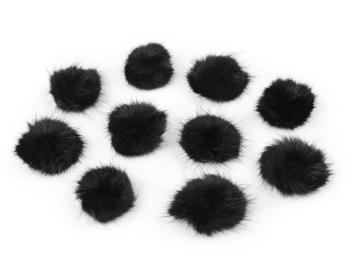 Aplikace kožešinová bambulka Ø3 cm - černá (10 ks)