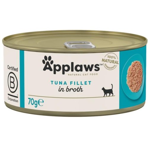 Konzerva Applaws je lehce stravitelné, nutričně vysoce hodnotné, přirozeně bezlepkové, hypoalergenní a hlavně velmi chutné krmení! 100% přírodní doplňkové krmivo bez umělých konzervačních látek, barviv nebo dochucovadel. Kvalitu poznáte na první pohled po otevření konzervy – přirozená konzistence natrhaných kousků masa z tuňáka v lahodném rybím vývaru vás přesvědčí a vaši kočku nadchne. Maso z tuňáka je bohaté na omega-3 a omega-6 nenasycené mastné kyseliny, které významně zlepšují kvalitu srsti a kůže. Ryby pocházejí z oceánů a jsou loveny způsobem, který neohrožuje delfíny (Dolphin Friendly Product). Složení: 75 % tuňák filety, rybí vývar, rýže. Analytické složky: hrubý protein 16 %, hrubé oleje a tuky 1 %, hrubý popel 1 %, hrubá vláknina 0,1 %, vlhkost 80 %. Metabolizovatelná energie: 828 kcal/kg (58 kcal v 70g balení) Dávkování: Krmte až 2 konzervy denně v závislosti na hmotnosti kočky. Doporučené dávkování je pouze orientační, potřeba je individuální a závisí na věku, množství pohybu a životním prostředí kočky. Podávejte jako zpestření ke kompletní vyvážené stravě, ideálně ke granulím Applaws. Podávejte při pokojové teplotě a po otevření uchovávejte v lednici. Kočka by měla mít vždy přístup k čerstvé pitné vodě.
