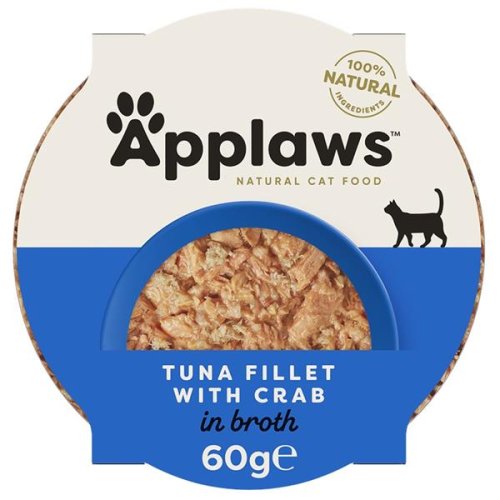 Applaws je lehce stravitelné, nutričně vysoce hodnotné, přirozeně bezlepkové, hypoalergenní a hlavně velmi chutné krmení! 100% přírodní krmivo bez umělých konzervačních látek, barviv nebo dochucovadel. Kvalitu poznáte na první pohled – skrz průhledný obal sami vidíte přirozenou konzistenci krmiva v podobě celých kousků tuňáka a krevetek. Ryby pocházejí z oceánů a jsou loveny způsobem, který neohrožuje delfíny (Dolphin Friendly Product). Applaws miska Cat Pot obsahuje 60 % šťavnatého masa a chutný vývar, proto jde o skvělou volbu pro kočky, které málo pijí nebo potřebují vyšší přísun tekutin. Balení v nízkých plastových miskách umožňuje jednoduché servírování. Misku stačí otevřít a můžete podávat! Složení: 56 % tuňák filety, rybí vývar, rýže, 4 % krab. Analytické složky: hrubý protein 12 %, hrubé oleje a tuky 1 %, hrubý popel 1 %, hrubá vláknina 0,1 %, vlhkost 84 %. Metabolizovatelná energie: 659 kcal/kg (39,5 kcal v 60 g balení) Dávkování: Krmte až 2 misky denně v závislosti na velikosti kočky. Doporučené dávkování je pouze orientační, potřeba je individuální a závisí na věku, množství pohybu a životním prostředí kočky. Podávejte jako zpestření ke kompletní vyvážené stravě, ideálně ke granulím Applaws. Podávejte při pokojové teplotě a po otevření uchovávejte v lednici. Kočce zajistěte stálý přístup k čerstvé pitné vodě.