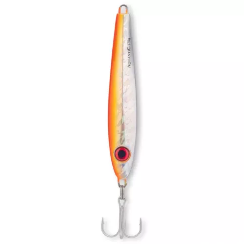 Aquantic pilker Skinny Jack má krátkou, zavalitou konstrukci, která vytváří výrazné tlakové vlny a skvělou vodní dislokaci. Díky tomu jej dravci registrují i v opravdu velké hloubce. Výrazné UV-aktivní barvy v kombinaci s velkým okem působí jako silný vizuální spouštěč útoku a dělají z tohoto modelu skutečný magnet na mořské predátory. Osazen extrémně ostrými trojháčky Mustad, které garantují spolehlivý zásek i při jemných dotycích ryby.