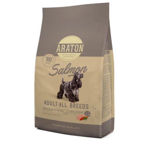Kompletní a vyvážené suché krmivo lososem a rýží určené pro dospělé psy všech plemen.