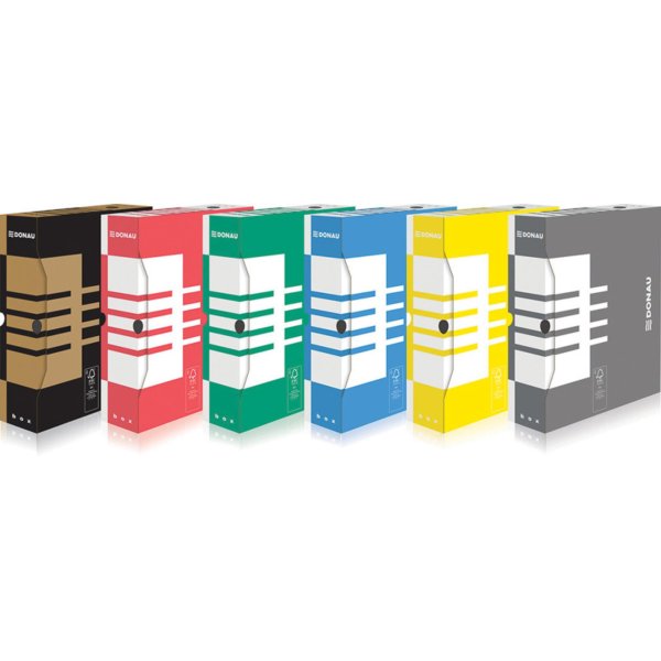 Vyrobeno z třívrstvé vlnité lepenky, 390 g/m2 Produkt neobsahuje kyseliny Typ zvlnění: B Kapacita: až 800 listů 80 g/m2 Má 5 děr pro usnadnění vkládání / vyjímání a pět popisných stran Díky speciální …