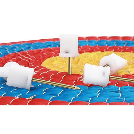 Merco Archer Aim Nails je balení dvanácti kovových připínáčků s plastovým koncem pro upevnění papírových terčů Merco Archer Aim k polystyrenu či jiné vhodné podložce. Délka kovového hrotu je 45 mm a plastové ABS koncovky 20 mm.