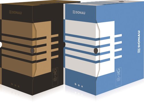 Archivační krabice vyrobená z třívrstvé vlnité lepenky gramáže 390 g/m2, která pojme dva pořadače A4 (se šíří hřbetu 75 mm)
