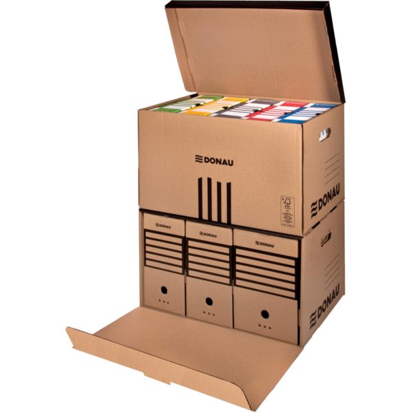 Integrované víko, otevřené nahoru, což usnadňuje přístup k dokumentům bez vyjmutí krabic z hromadných beden