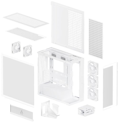 Elegantní bílá skříň ARCTIC Xtender VG kombinuje moderní design s čirým sklem a špičkovou funkčností. Díky prostornému interiéru pojme E-ATX základní desky až 285 mm široké a nabízí vynikající možnosti chlazení s podporou 360mm a 420mm radiátorů v horní i boční pozici.