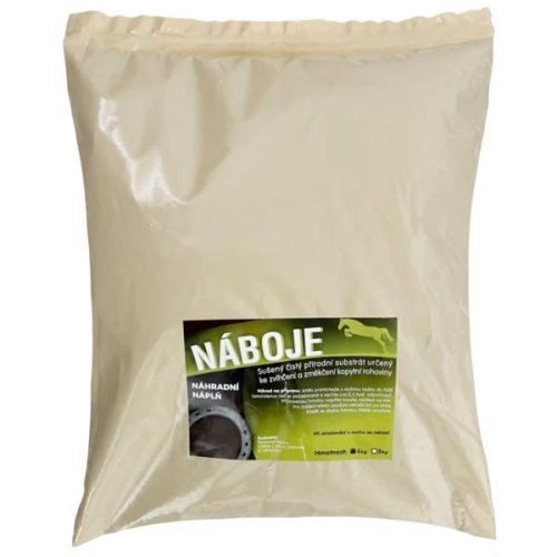 Čistý sušený přírodní substrát s vysokou sorpční schopností je určený ke zvlhčení a změkčení kopytní rohoviny. Jílové minerály se vyznačují vysokou bobtnavostí a plastičností. Náboje se používají na změkčení rohoviny před okováním či jakoukoliv jinou úpravou kopyt. V obdobích sucha lze směs používat pro prevenci praskání vysušené rohoviny. Návod na přípravu: Přiměřené množství směsi promíchejte s vlažnou vodou do mírně řidší konzistence, než je vámi požadovaná, a nechejte cca 1/2 hodiny odstát (nabobtnat). Připravenou hmotou vyplňte kopyta a nechejte působit nejlépe přes noc. Pro zvýšení efektu použijte několik dní po sobě. Množství: Balení obsahuje 4 kg sušeného substrátu v sáčku. Celý obsah postačí na naplnění cca 64 průměrně velkých kopyt (velikost č. 2).