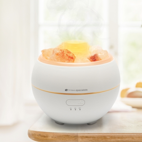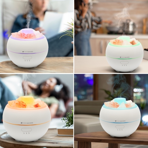 Aroma difuzér, zvlhčovač a osvětlení v jednom s Himalájskými solnými kameny. Je ideální pro zvlhčení vzduchu v místnosti nebo pro vytvoření příjemné domácí atmosféry s použitím éterických olejů.