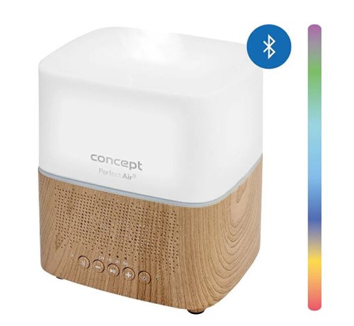 Aroma difuzér Light wood Concept DF2010 Perfect Air nabízí mnoho využití. Můžete ho využít pro aromaterapii, jako zvhlčovač vzduchu, Bluetooth reproduktor nebo budík. Má 300 ml nádobkou na vodu, která poskytuje až 10 h nepřetržitého provozu.