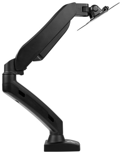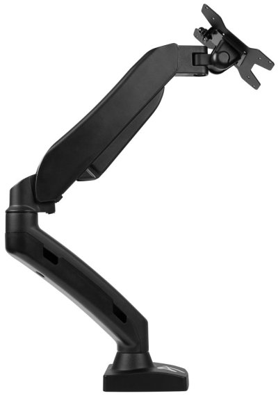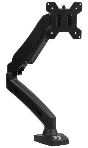Nastavitelný držák pro monitor ušetří místo na pracovním stole. Je vhodný pro ploché LCD monitory o velikosti 13" až 27" a hmotnosti do 7 kg. Disponuje plynovým pístem pro vyrovnání zátěže a umožňuje snadné nastavení optimální výšky, náklonu, horizontálního otočení i změnu orientace na výšku (Pivot 360°). Upevnění držáku je možné pomocí svorky na pracovní desku s tloušťkou až 82 mm. Intuitivní systém správy kabeláže minimalizuje nepořádek. Součástí balení je také šroub pro instalaci držáku do otvoru v desce stolu.