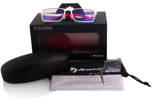 Brýle AROZZI Visione VX-800 představují ideální doplněk pro ochranu očí náruživých hráčů i uživatelů, kteří tráví dlouhé hodiny před displejem či obrazovkou. Technologicky pokročilé čočky v brýlích výrazně redukují modré světlo vycházející z displeje a současně se postarají o zlepšení vizuálních vjemů herních scenérii a zajistí ostrost i jasnost pracovních tabulek či textů. Díky potlačení až 50 % krátkovlnného modrého světla v kritickém rozsahu frekvence 400 nm až 500 nm jsou ideální pro dlouhé herní maratóny i pracovní nasazení.