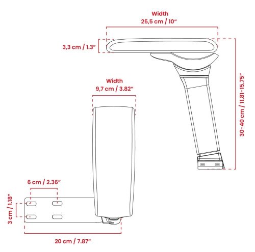 Náhradní ergonomické područky zlepší zážitek z práce i hraní her. Lze je nastavit do nesčetných poloh díky možnosti posunu nahoru a dolů v rozsahu 100 mm, dopředu a dozadu v rozsahu 45 mm, dovnitř a ven v rozsahu 216°, otočení o 360° a naklonění do úhlu až +18°. Otočte je nahoru a dovnitř pro pohodlnější hraní her na konzoli nebo telefonu, posuňte je dozadu pro větší oporu loktů nebo je sklopte dolů, abyste se přiblížili ke stolu. Balení obsahuje dvě područky (na levé a pravé straně). Jsou kompatibilní s většinou židlí, které mají područky připevněné čtyřmi šrouby pod sedákem.