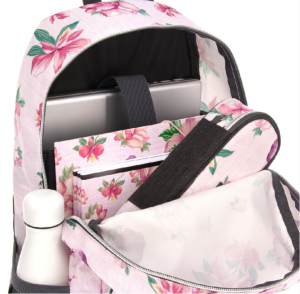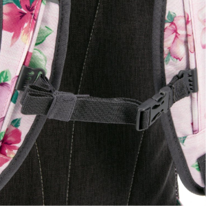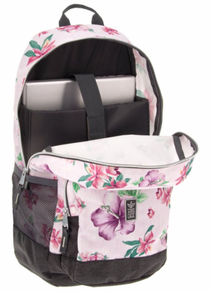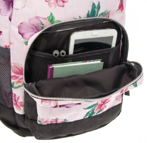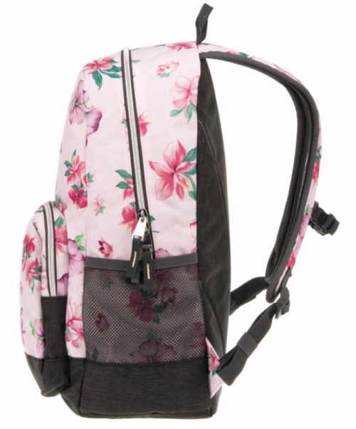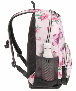 Vysoce kvalitní školní batoh v květinovém designu Flowers, typ AU-14. Batoh je vyroben z prvotřídního a pevného materiálu. Skládá se ze dvou hlavních komor na zip s dalším bohatým vnitřním členěním na psací potřeby, mobil či jiné drobnosti. Další výhodou je polstrovaná přihrádka pro notebook. Popruhy jsou polstrované, měkké a lze je nastavit na správně padnoucí velikost. Dvě boční kapsy ze síťoviny slouží k přenosu láhve s vodou nebo menších předmětů. Rozměry: 32 x 51 x 25 cm Materiál: 100% nylon polyester Objem: 27l Nosnost : až 12 kg Vhodné pro žáky od 5.třídy ZŠ i středoškoláky.