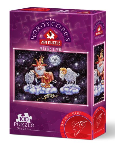 Puzzle od tureckého výrobce z kolekce Horoskopy , s motivem znamení Berana. Rozměr složeného puzzle cca 34 x 24 cm