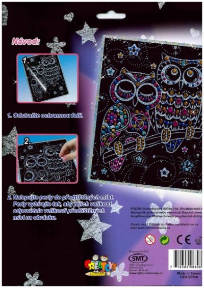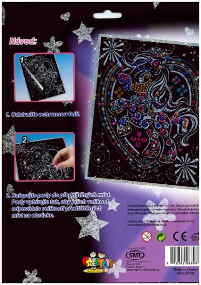 Obrázek obsahuje 200 barevných perel. Perly vybírejte podle velikosti předtištěných míst na obrázku a nalepte. Skvělá zábava podporující jemnou motoriku dětí. Vhodné od 6 let. Velikost obrázku 25 x 20 cm.