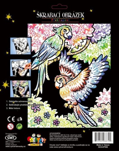 Postup: Z obrázku odstraňte ochrannou přední fólii. Přiloženým škrabacím perem vyškrábejte linky předtištěného obrázku. A je hotovo.