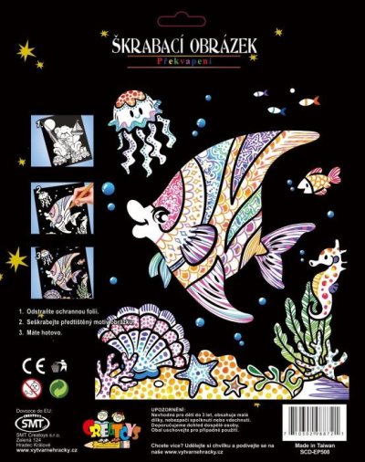 Postup: Z obrázku odstraňte ochrannou přední fólii. Přiloženým škrabacím perem vyškrábejte linky předtištěného obrázku. A je hotovo.