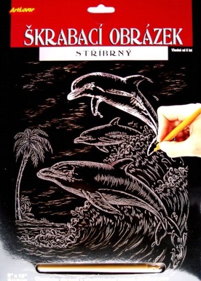 ARTLOVER Škrabací obrázek stříbrný Delfíni 20x25cm