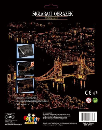 Vhodné pro děti od 6 let. Škrabací pero má ostrý hrot, u malých dětí je proto vhodný dohled dospělé osoby.