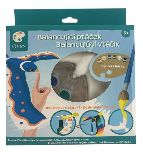 Vymaluj si ptáčka dle své fantazie. Ptáček je tak skvěle vyvážen, že drží na zobáčku na jakémkoliv rovném povrchu.