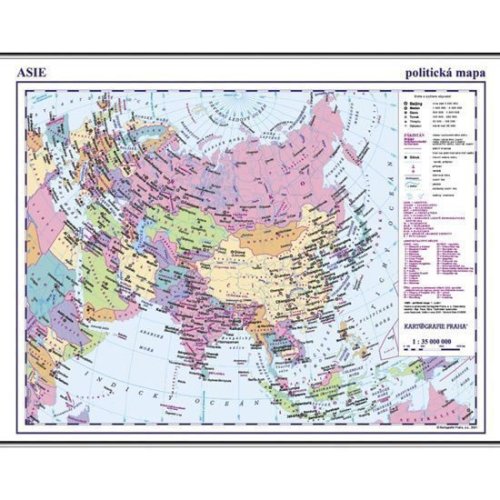 Přehledná mapa příručního formátu zobrazuje politické uspořádání největšího světového kontinentu. V samostatných tabulkách je navíc rozpracováno administrativní dělení velkých států (Rusko, Čína), součástí mapy jsou i vlajky všech asijských zemí. Druhá strana tradičně nabízí obrysovou mapu.