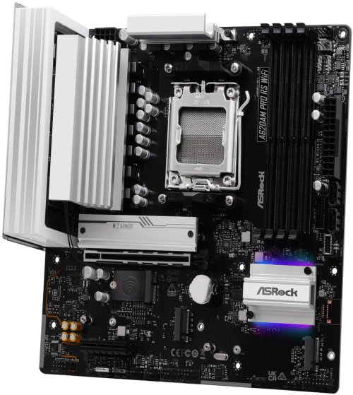 Základní deska disponuje 6+2+1fázovým napájením s Dr.MOS pro spolehlivý přísun energie do procesoru a následný stabilní chod i velmi náročných aplikací. Přítomny jsou také volné sloty pro operační paměť typu DDR5, které pojmou až 256 GB. Model ASRock A620AM Pro RS WiFi si poradí také s instalací moderních grafických karet, nebo ultra rychlými SSD jednotkami, které napěchujete do M.2 slotů.