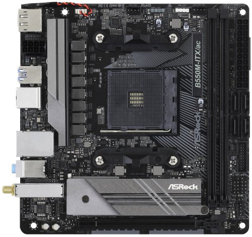 Výkonná základní deska ASRock B550M-ITX/ac pro stavbu moderního PC systému. Podporuje procesory AMD Ryzen 3. a vyšší generace a až 64 GB paměti DDR4, pro které je připravena dvojice slotů.