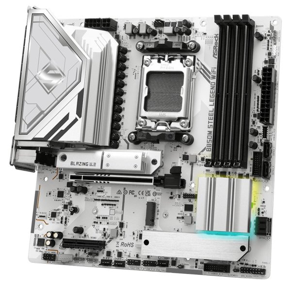 Základní deska ASRock B850M Steel Legend WiFi je vybavena vysokorychlostním řešením PCIe Gen5 Blazing M.2, které dosahuje dvojnásobné šířky pásma a je ideální pro moderní SSD jednotky. Chlazení se skládá z velkého hliníkového chladiče, který efektivně odvádí teplo a podporuje stabilní chod při vysoké pracovní zátěži, případně hraní her.