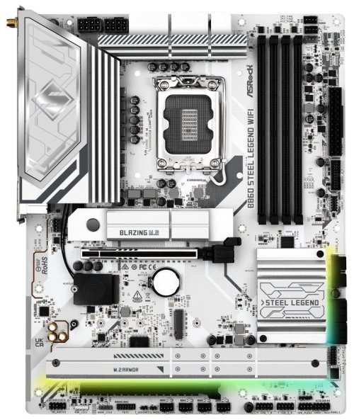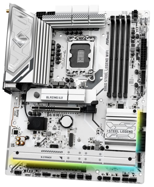 Základní deska ASRock B860 Steel Legend WiFi je vybavena vysokorychlostním řešením PCIe Gen5 Blazing M.2, které dosahuje dvojnásobné šířky pásma a je ideální pro moderní SSD jednotky. Chlazení se skládá z velkého hliníkového chladiče, který efektivně odvádí teplo a podporuje stabilní chod při vysoké pracovní zátěži, případně hraní her.