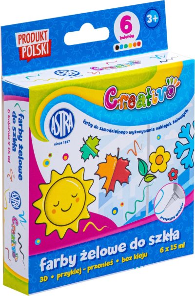 Gelové barvy ASTRA CREATIVO pro vytváření vitráží, po zaschnutí se vytvoří statická gelová "nálepka", kterou lze přenášet.
