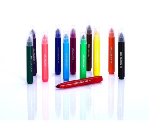 Sada 12 barevných fixů Jumbo pro děti od 3 let. Fixy s ventilačním bezpečnostním uzávěrem a vláknovým hrotem odolným vůči zatlačení. Jsou zdravotně nezávadné a vypratelné. Odolné vůči vyschnutí po dobu 3 let. Šíře stopy: 6 mm