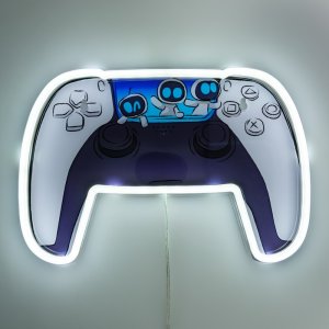 Astrobot Neon světlo představuje zajímavý dekorativní prvek určený pro zavěšení na zeď, který kombinuje moderní design s motivem herního ovladače. Světlo má rozměr přibližně 30 cm na šířku a je zhotoveno z materiálů, které umožňují efektní LED podsvícení. Okolo kontur ovladače je umístěn bílý neonový LED pásek, který vytváří příjemné, rovnoměrné světlo a dodává produktu futuristický vzhled. Uvnitř ovladače jsou zobrazeny tři stylizované robotické postavičky Astrobot, které přidávají produktu hravý charakter a tematicky odkazují na značku.