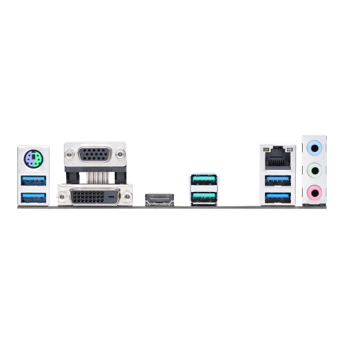 Externí porty: *1x PS/2 keyboard/mouse combo port(s) *1x DVI-D *1x D-Sub *1x HDMI *1x LAN (RJ45) port(s) *2x USB 3.2 Gen 2 (teal blue) (2 x Type-A) *4x USB 3.2 Gen 1 (blue) Type-A *3x Audio jack(s)