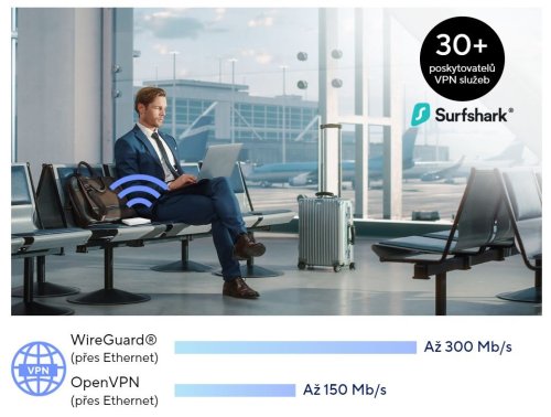 Celková rychlost: 2402Mb/s + 574Mb/s Provozní frekvence: 2,4GHz, 5GHz Síťové standardy: