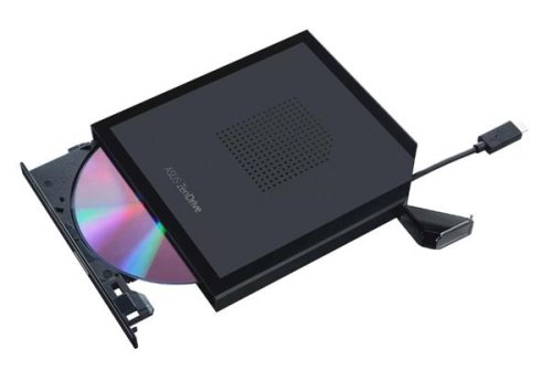 Externí DVD mechanika a vypalovačka ASUS ZenDrive V1M s vestavěným kabelovým úložištěm, rozhraní USB-C®, kompatibilní s Windows 11 a macOS, podpora M-DISC, komplexní řešení zálohování v ceně