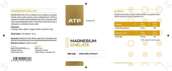 Magnesium chelate je unikátní forma chelátově vázaného hořčíku, která vyniká vysokou mírou vstřebatelnosti. Hořčík je základní minerální složkou lidského těla, která v organismu plní celou řadu biologických funkcí. Přispívá ke snížení míry únavy a vyčerpání a k normální činnosti svalů. Doporučené dávkování: