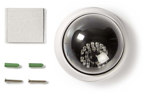Atrapa venkovní kopulovité kamery pomáhá zastrašit narušitele. Má profesionální design, vyznačuje se vestavěnou blikající LED a lze ji snadno namontovat pomocí dodané konzole.