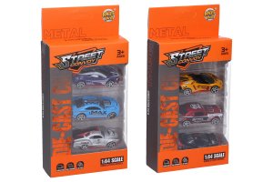 Auta kovová 3 ks. Rozměry 7,4x3,2x2 cm. Volná kola. 2 varianty.