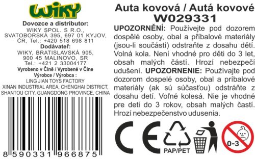 Auta kovová 4 ks. Velikost 7 cm. Volná kola.