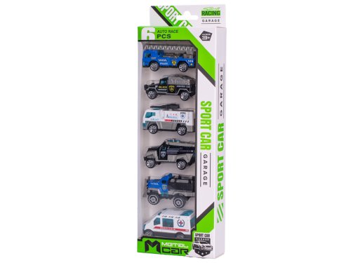 Auta policejní 7 cm kov volný chod 6 ks