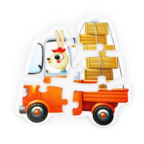 Puzzlika, nová značka puzzlů s moderním kreativním designem, přináší pro malé děti aktivní učení formou zábavné hry. Obrázkové puzzle Auta 5 v 1 obsahuje 20 velkých pevných puzzlů, ze kterých poskládáte 5 samostatných obrázků. Na každém obrázku je vždy vyobrazeno autíčko se svými pasažéry. Jednotlivé obrázky mají 2 až 6 dílků. Puzzle je skvělá hra pro malé děti, která u nich rozvíjí logické myšlení, představivost, kreativitu, jemnou motoriku a různé poznávací znalosti. Puzzle jsou vyrobeny z velice pevného vícevrstvého kartonu s lesklým povrchem. Karton byl vyroben z kvalitního, ekologicky pěstovaného dřeva. Puzzle je možné otřít vlhkým hadříkem. Nevhodné pro děti do 2 let. Vyrobeno v Evropě.