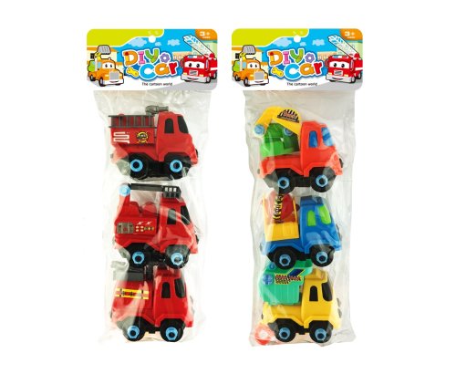 Auta šroubovací 3 ks. Rozměry auta 10x8x9 cm. 2 varianty - stavební, hasičské.