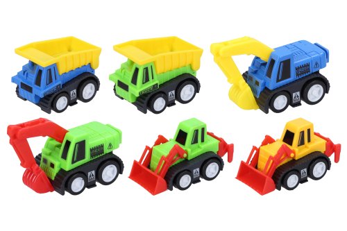 Plastová autíčka na zpětné natažení potěší všechny malé stavitele! Práce na stavbě s těmito malými pomocníky půjde raz dva!