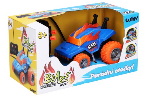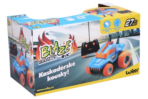 Auto Blaze malé RC na dálkové ovládání. Rozměry 11,5x11x9 cm. Frekvence 27MHz. 3xAAA baterie do auta, 2xAA do ovladače nejsou součástí. Přepínač ON/OFF na ovladači. Ovladač - obě páčky - pohyb dopředu, dozadu, jedna páčka - otáčení.