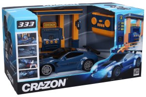 Auto dýmící s čerpací stanicí RC na dálkové ovládání. Rozměry auta 22x10x6 cm. Frekvence 2.4GHz. Světelné, zvukové, dýmící efekty. 4xAA do auta, 2xAAA do ovladače, 3xAA do čerpací stanice nejsou součástí. Čerpací stanice slouží jako nádrž na vodu, která se z ní doplňuje čerpací pistolí (hadicí) do auta do nádržky nad zadním pravým kolem pro následné dýmící efekty. Vložte kartu do čerpací stanice dlouze stiskněte (držte) jedno z tlačítek 30%, 60%, 90% pro čerpání vody. Ovladač - přepínač ON/OFF, světelný dýmící efekty, automatické parkování, zvukové efekty.
