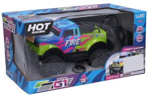Auto Fire svítící RC na dálkové ovládání. Rozměry 23x14x11 cm. Frekvence 27MHz. Světelné efekty povrchu auta. 4xAA baterie do auta, 2xAA do ovladače nejsou součástí. Try Me tlačítko pro světelné efekty v obalu - 3xAG13 baterie (neměnitelné) součástí. Při vybalování nutno odpojit Try Me kabel z auta. Rychlost 10 km/h. Dosah až 20 m. Přepínač ON/OFF na spodní straně auta.